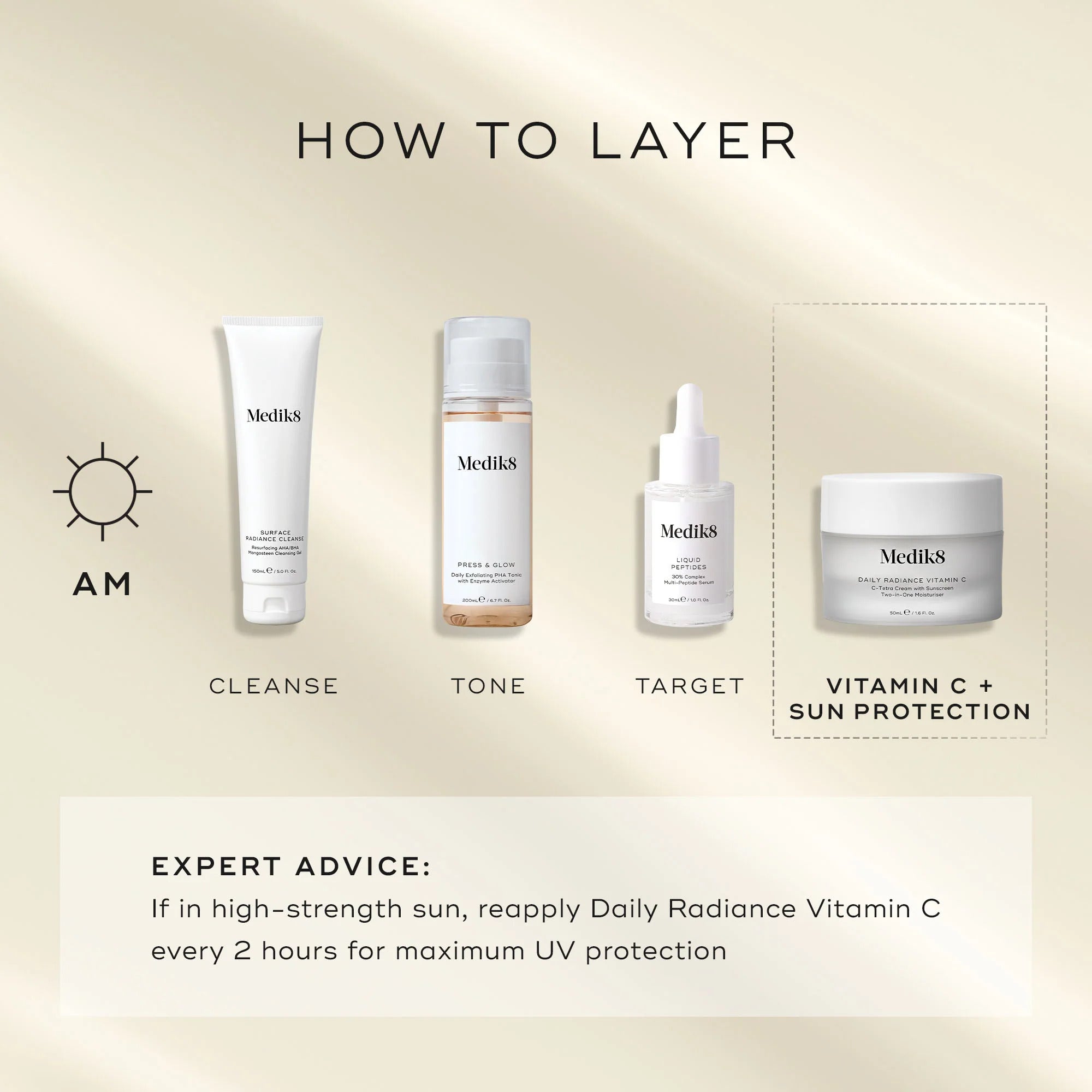 Illuminate your skin with Medik8 Daily Radiance Vitamin C, an all-in-one moisturiser that brightens and protects.