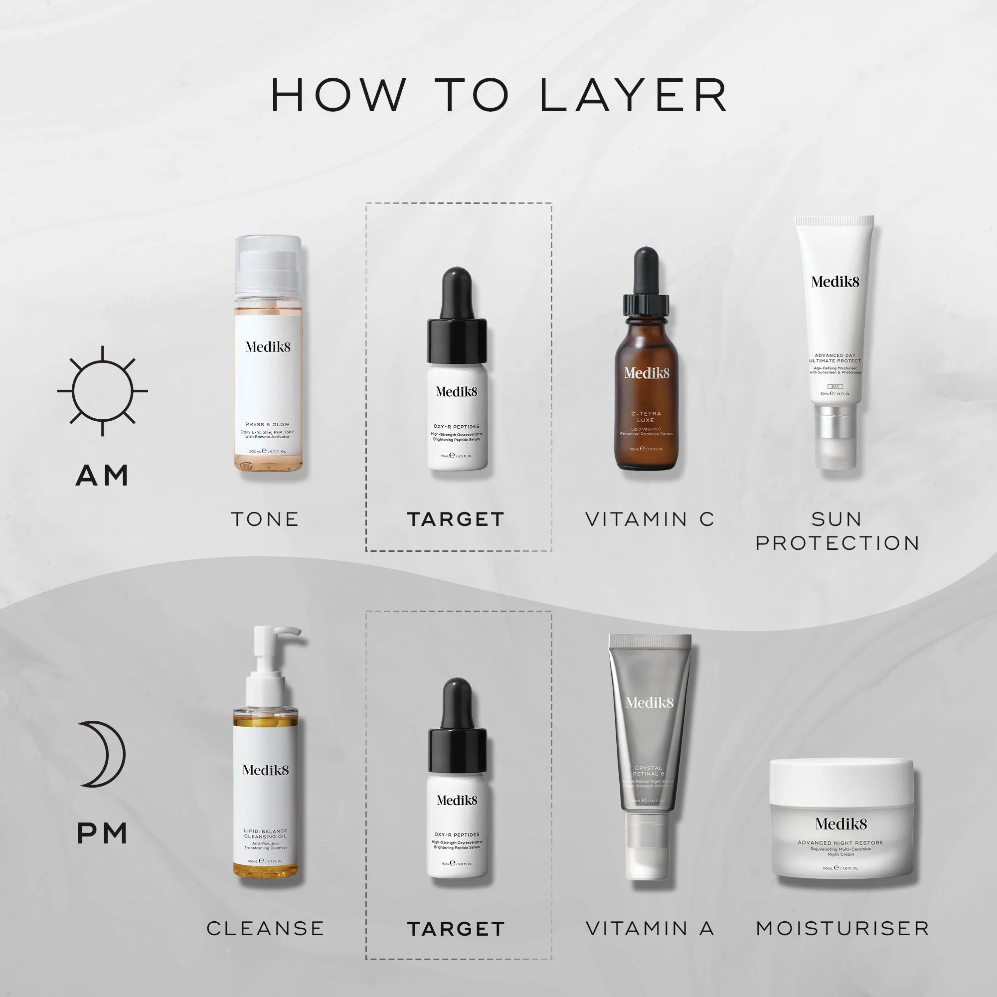 Transform your skin with Medik8 Oxy-R Peptides, a state-of-the-art serum crafted to tackle uneven skin tone and pigmentation. Featuring Oxyresveratrol (Oxy-R), a highly stabilised brightening agent, this serum works in harmony with peptide technology to reduce hyperpigmentation, promoting a more even and radiant complexion.