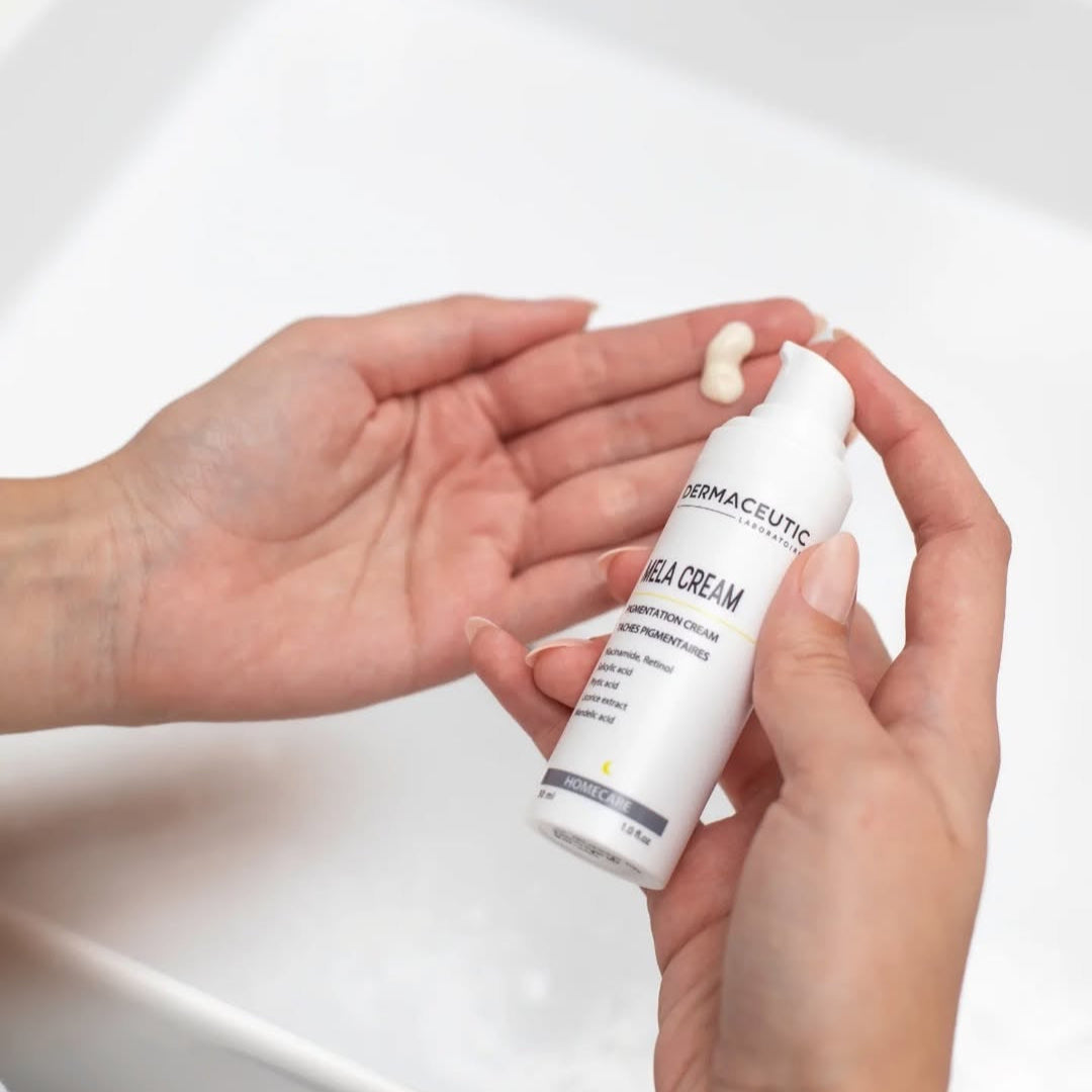 Mela Cream minimises the appearance of pigment spots, harmonises complexion and promotes an even skin tone. The mix of nine highly concentrated active ingredients stops the transfer of melanin and helps reduce pigmentation.