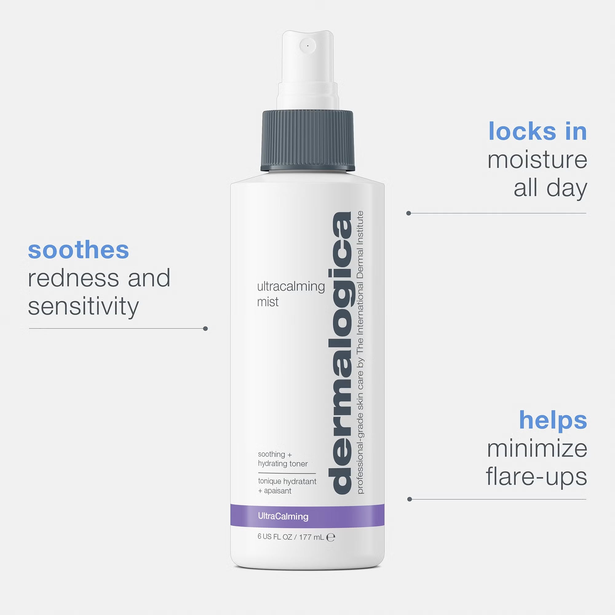 Dermalogica UltraCalming Mist instantly refreshes skin and soothes any irritations. Powered by an exclusive UltraCalming Complex, this facial mist spray tames redness, inflammation and sensitivity for a calm and comfortable complexion. Aloe promotes healing, while caring for your skin. Glycerin fortifies your skin's natural moisture barrier, leaving your skin hydrated and supple.